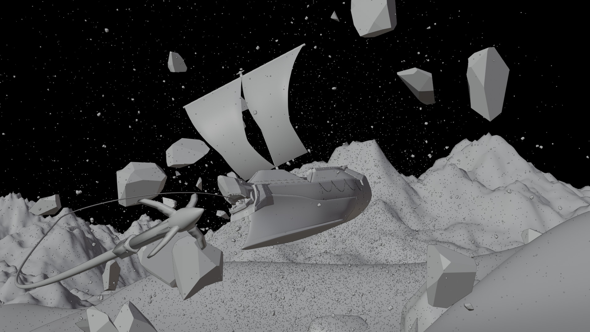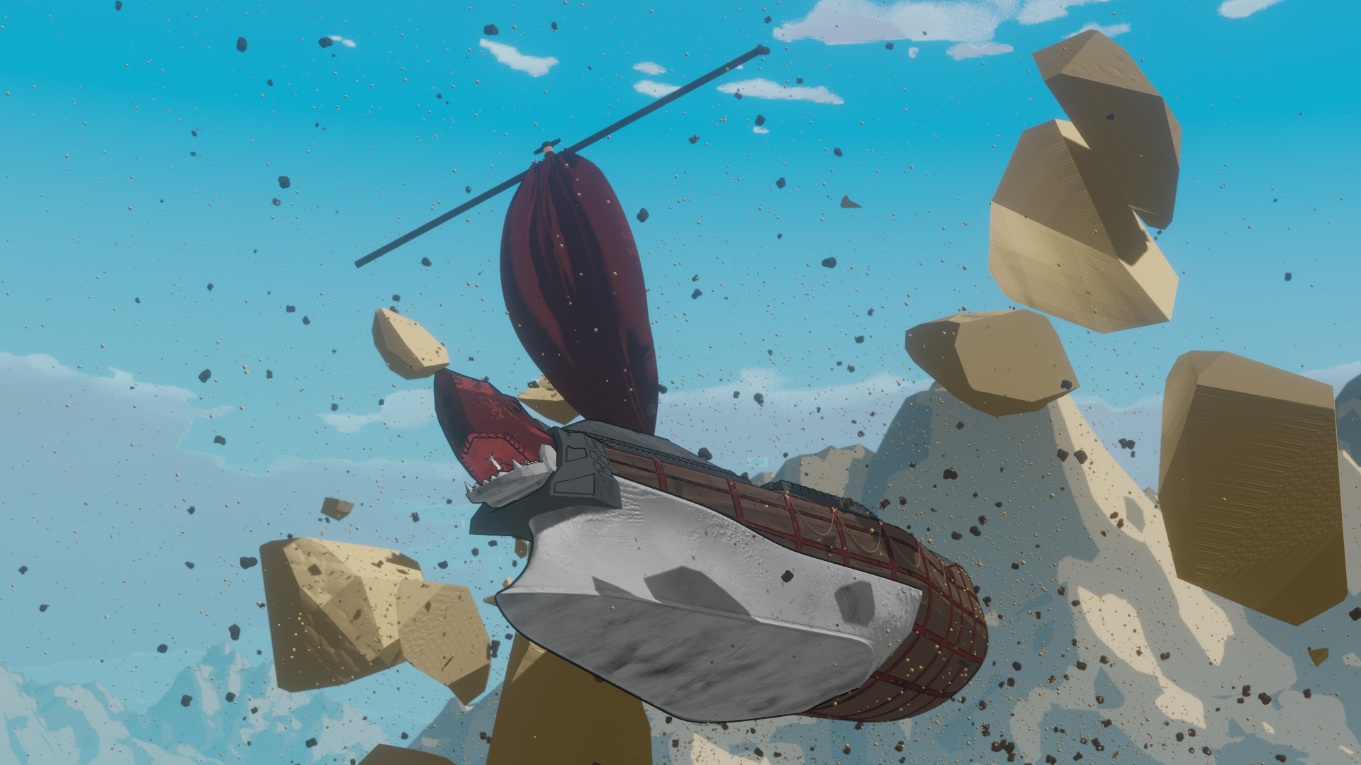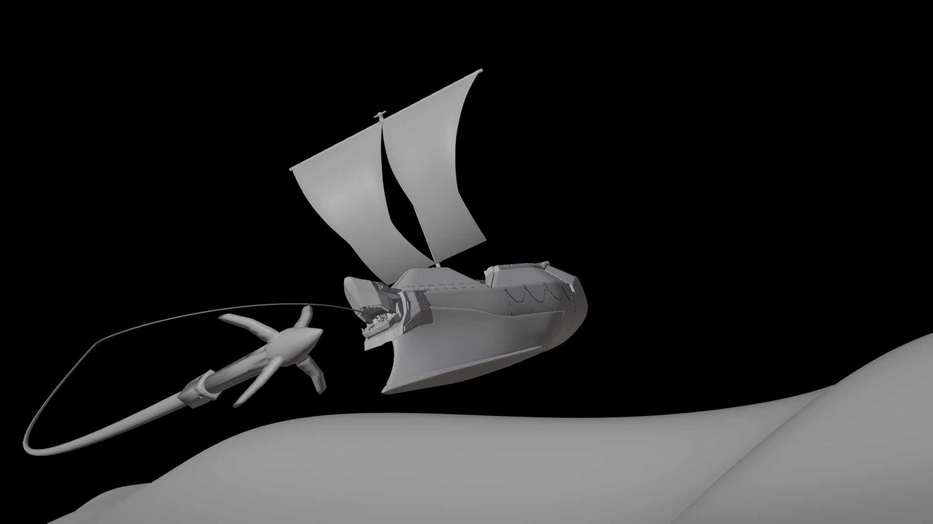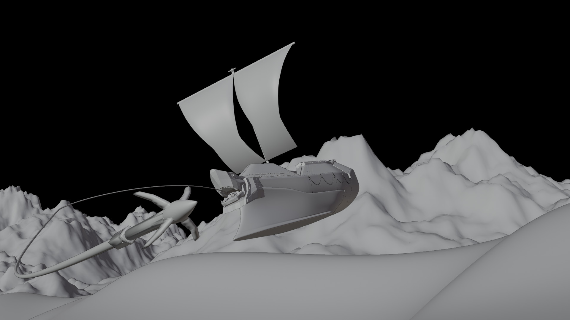 The Dreadnought is a ship that roams the deserts of a distant planet, catching sand monsters with its grappling hook and hunting them down.